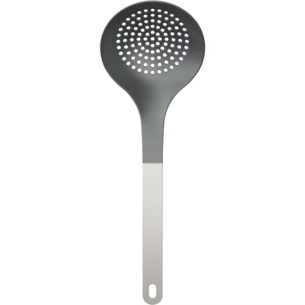 Stor hålslev med färgat handtag i serien Optima från Rosti – ett oumbärligt redskap i varje kök. En hålslev kommer väl till pass för att lyfta upp kött och grönsaker ur kastruller eller fritöser utan att spilla vätska. Den här varianten är tillverkad av nylon, ett material som är skonsamt mot non-stick-kokkärl samtidigt som det gör att sleven tål upp upp till 220°C. Med sin ergonomiska design och sitt praktiska upphängningshål är hålsleven
